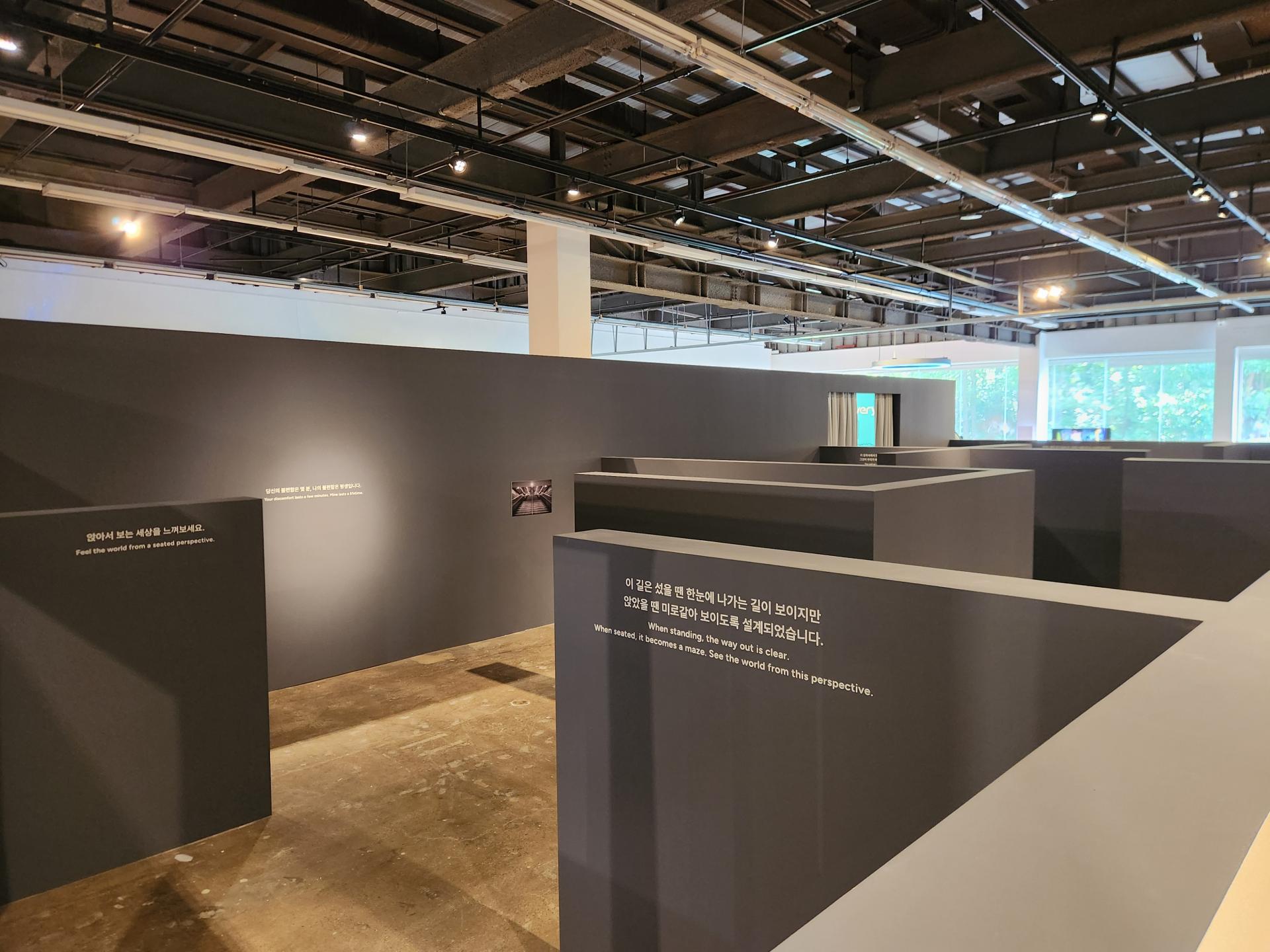 전시장 내부에는 관람객이 직접 로봇체어를 타고 체험할 수 있는 참여형 공간이 마련된다. 서 있을 때는 훤히 보이는 길이 앉았을 때는 벽처럼 가로막히는 구조물을 통해, 이동약자가 마주하는 현실적 제약을 직관적으로 느낄 수 있도록 기획됐다.